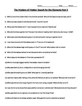 The Mystery of Matter Worksheet Answer Key